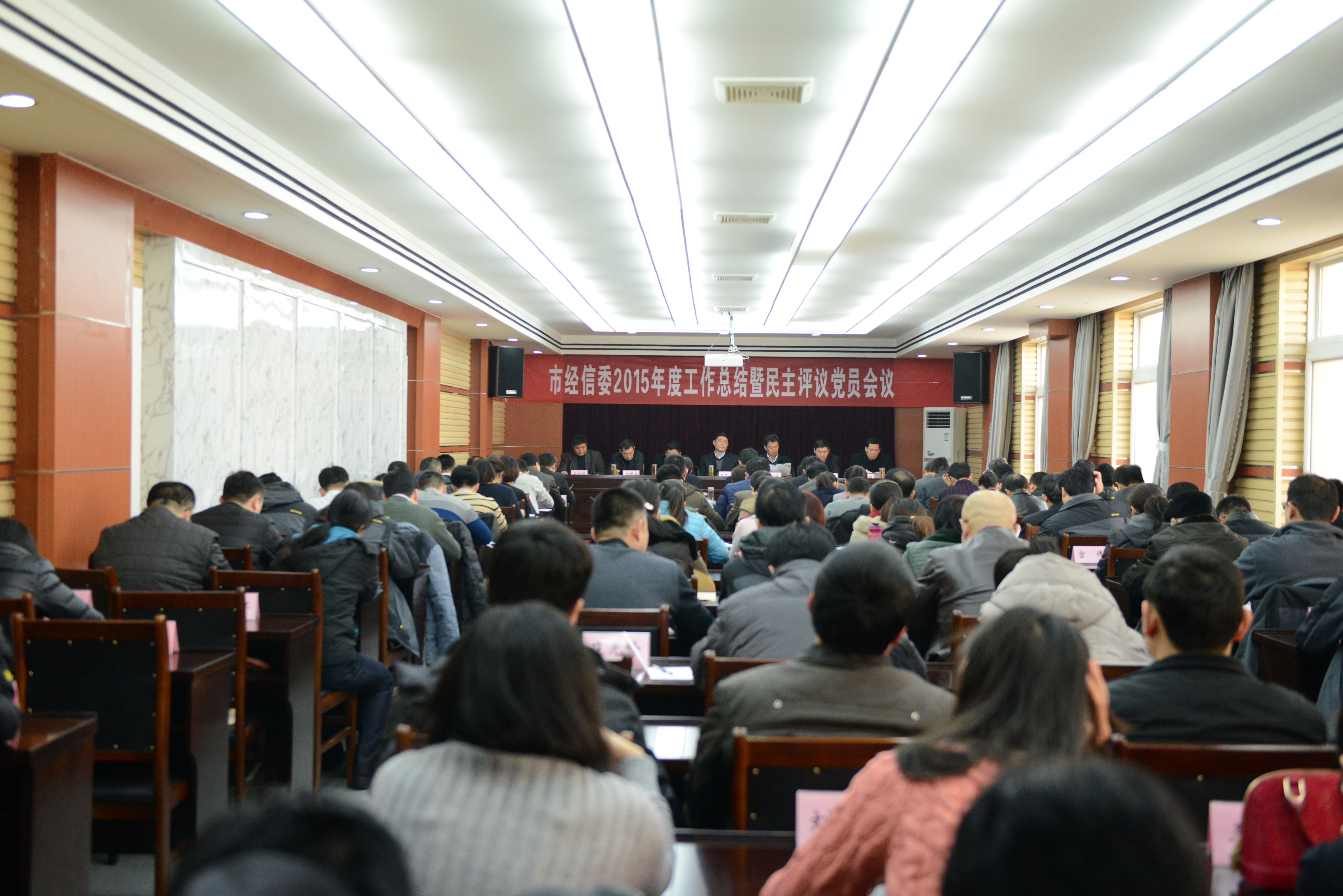 2016年2月3日,市经信委召开2015年度工作总结暨民主评议党员会议,委党委书记、主任王明柱参加会议并讲话。会议由委党委副书记、副主任常学锋主持,委机关和委属各单位全体在职人员参加了会议。会上,委党委委员、副主任郭益民通报了2015年度市经信委工作情况,党委委员、副调研员马士明通报了2015年度市经信委机关党委工作情况,开展了年度机关工作人员年度考核和民主评议党员工作。